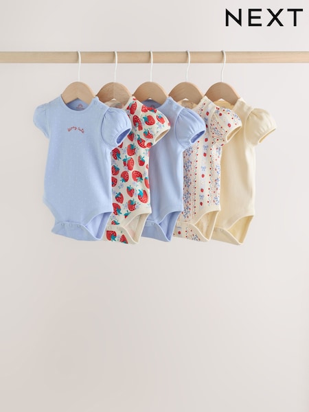 Blue Short Sleeve Baby Bodysuits 5 Pack