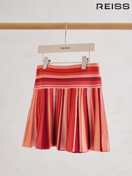 Reiss Red Milo 9-13 yrs Stripe-Knit Pleated Skirt