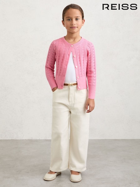 Reiss Ivory Flo 3-9 yrs Wool-Cotton Pointelle Cardigan