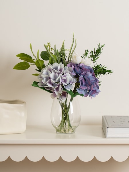Scottish Everlastings Ltd Blue Faux Hydrangeas in Glass Vase