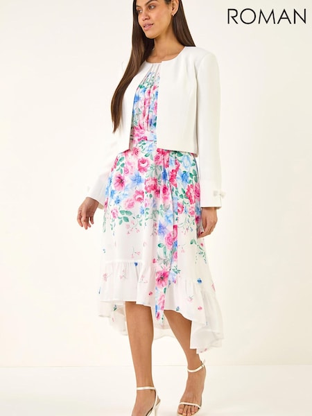 Sosandar White Petite Boucle Collarless Jacket With Gold Button Detail