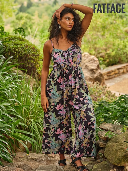 FatFace Rosa Rosa Black Ditsy Pop Wide Leg Jumpsuit