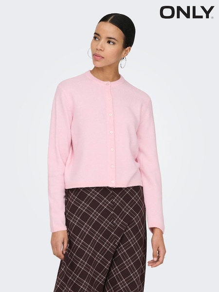 Վարդագույն - Փափուկ Բորգի կաբելային կոճակով կարդիգանի միջով անցնող բրդյա կաշվե կտոր