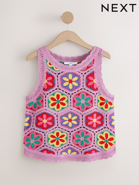 Purple Bright Multi Crochet Knit Floral Tank
