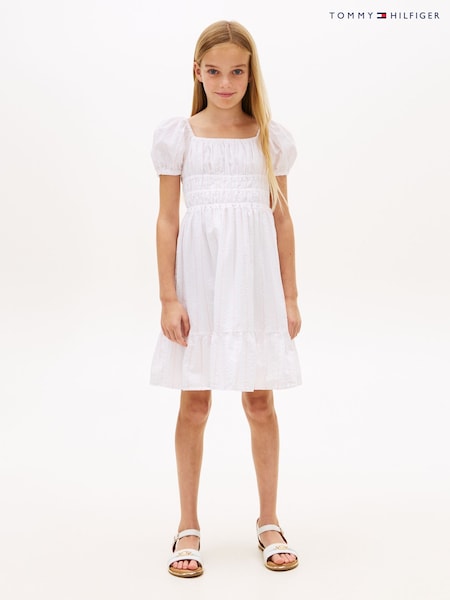 Tommy Hilfiger White Seersucker Puff Short Sleeve Dress