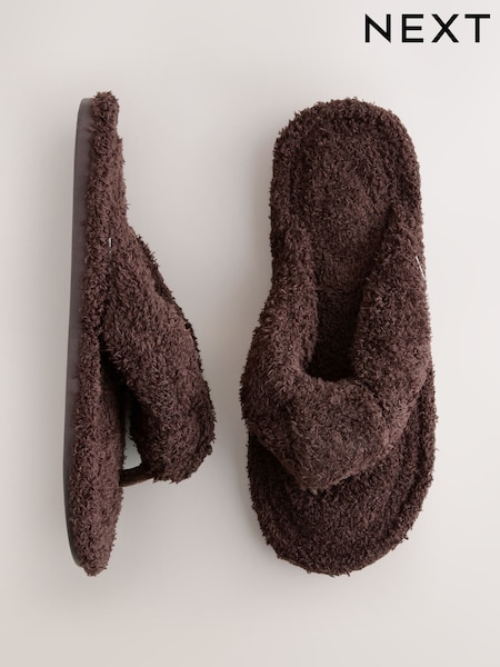 Chocolate Brown Boucle Toe Thong Slippers