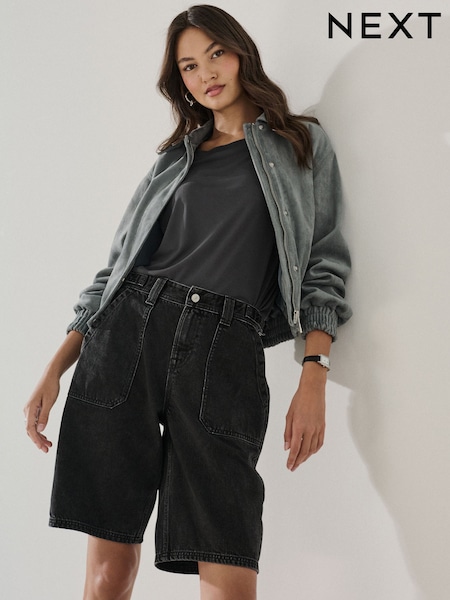 Washed Black Hourglass Longline Jorts Denim Shorts