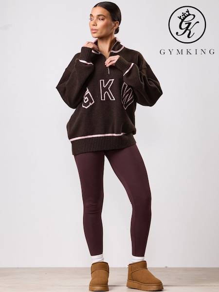 Gym King Brown Knockout Knitted 1/4 Zip Funnel Jumper