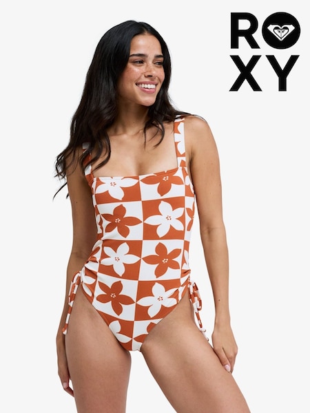 Roxy Orange Floral Hazy Days Square Neck Swimsuit