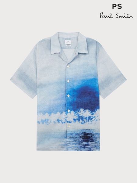 PS Paul Smith Blue Casual Fit Short Sleeve Print Shirt
