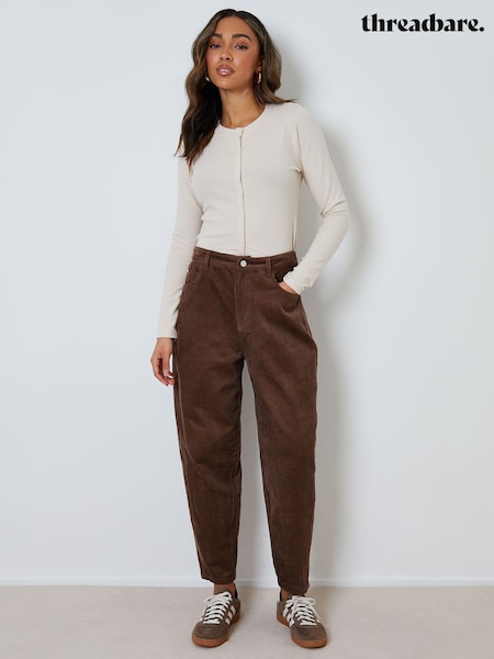 Threadbare Brown Corduroy Barrel Leg Trousers