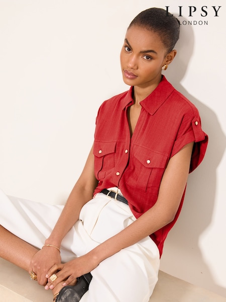 Lipsy Red Touch Of Linen Short Sleeve Shirt