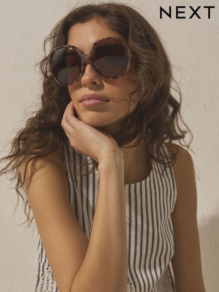 Marron écaille de tortue - Lunettes de soleil rondes oversize