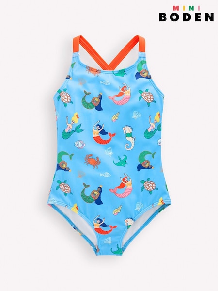 Boden Blue Cross-Back Printed Swimsuit