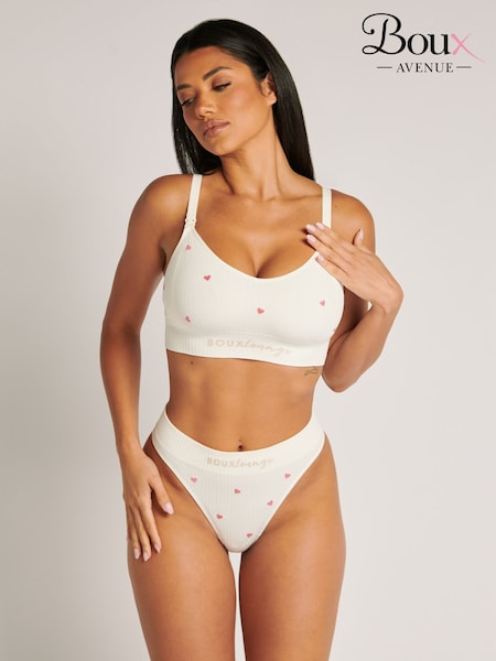 Boux Avenue White Nursing Heart Embroidered Seamfree Rib Bralette