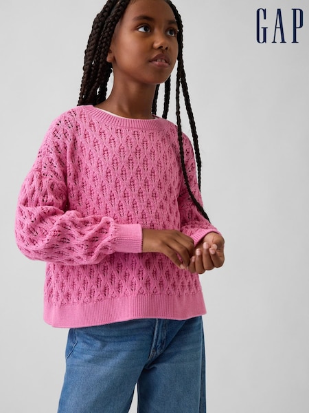 Gap Pink Crochet Oversized Crew Neck Jumper (4-13yrs)