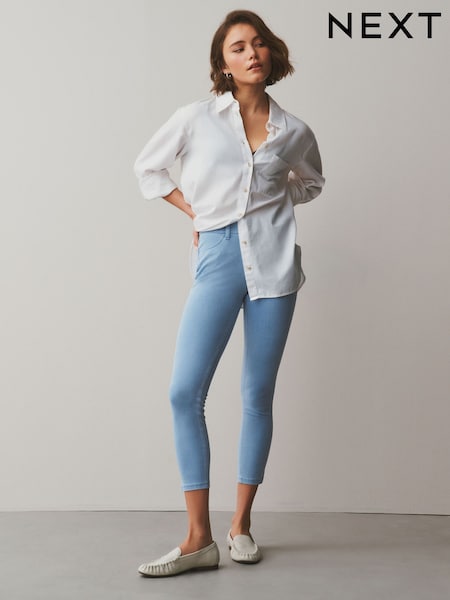 Bleach Blue Cropped Jersey Denim Leggings