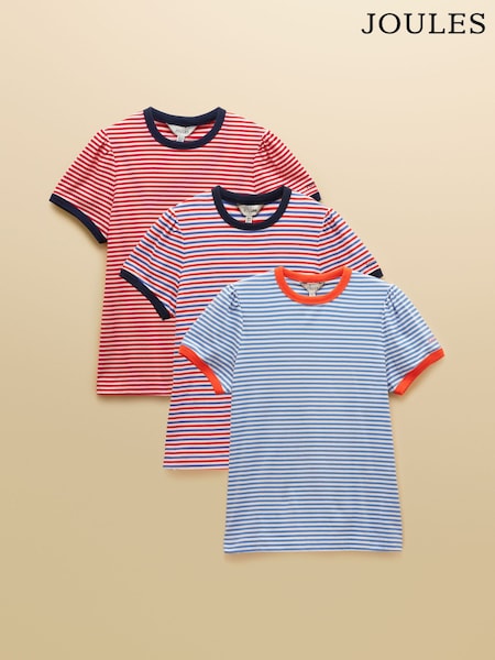Joules Erin Pink/Green/Navy Striped Short Sleeve Tops 3 Pack