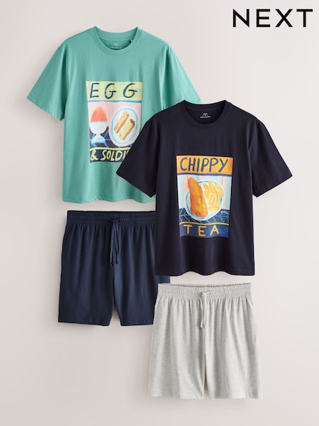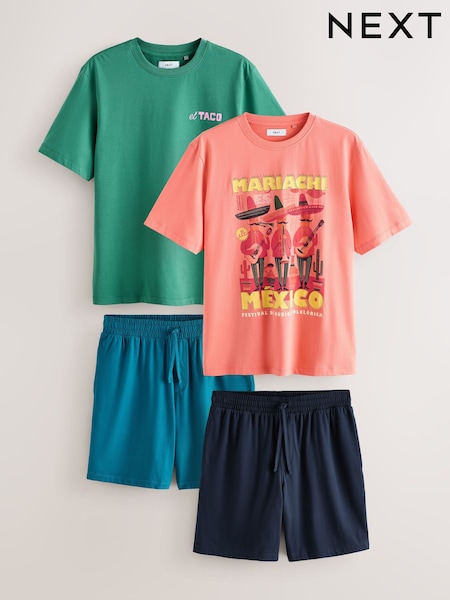 أخضر/برتقالي - Graphic Short Sleeve Jersey Pyjamas Set 2 Pack
