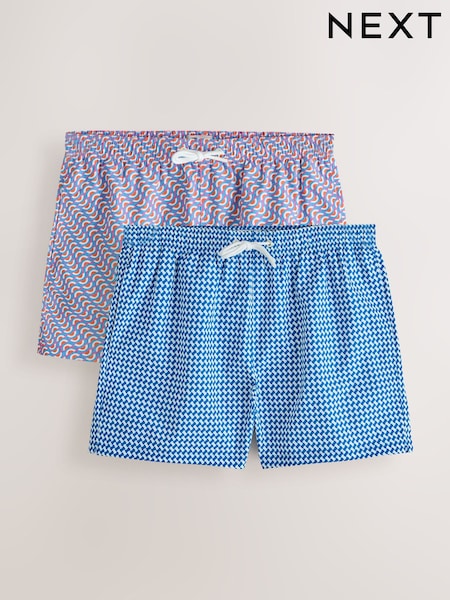 أحمر وأزرق - حزمة من 2 شورت سباحة بطبعة شكل هندسي بطول ساق داخلي 5 بوصات