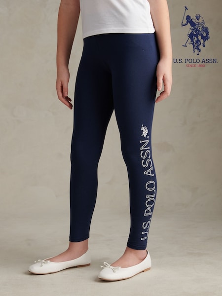 أزرق - من U.S. Polo Assn. طقم هودي وبنطلون رياضي للبنات بملمس ناعم من الداخل