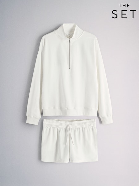 أبيض - The Set 2 Pack Quarter Zip Sweatshirt and Shorts Co-ord Set