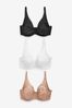 7.3.1 Buy Black/White/Praline Nude Non Padded Full Cup DD+ Microfibre Smoothing Ultimate Comfort T-Shirt Bras 3 Pack from Next Bahrain