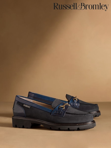 Russell & Bromley Navy Westminster Snaffle Lug Sole Loafers