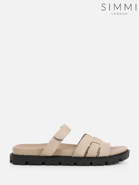 Simmi London Cream Adelle Chunky Strap Footbed Slides