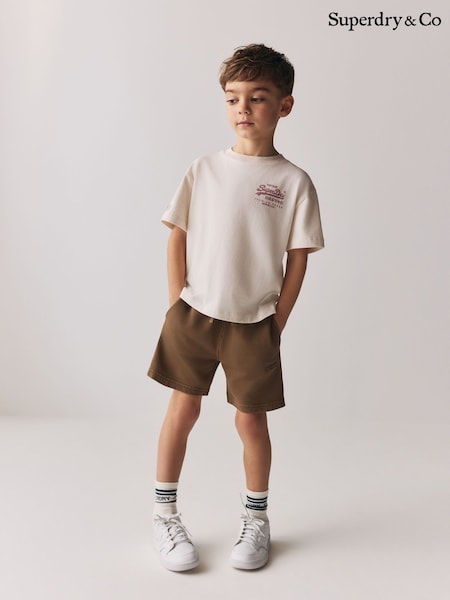 Superdry Brown/White T-Shirt and Shorts Set