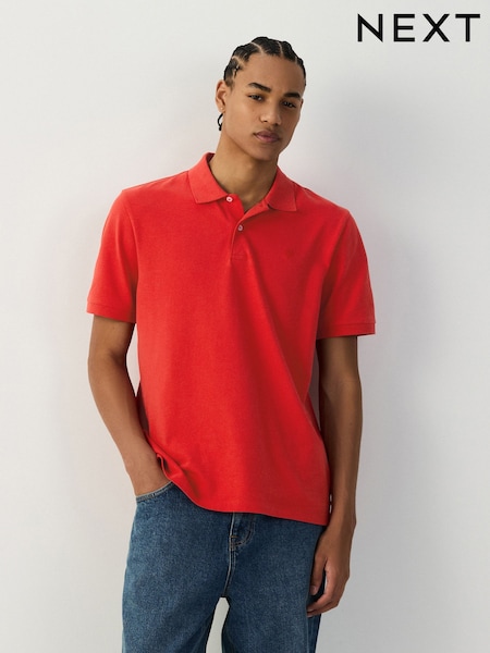 Red Bright Regular Fit Short Sleeve Pique Polo Shirts
