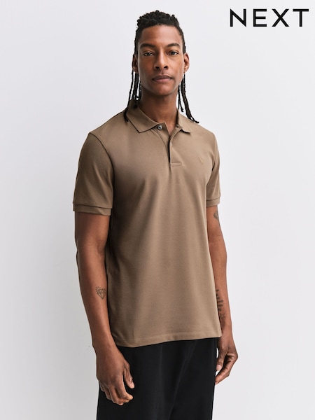 Brown Light Slim Fit Short Sleeve Pique Polo Shirts