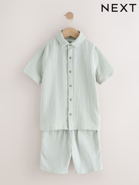 Light Grey Short Sleeve Double Cloth Textured Shirt and Shorts Set (3-16yrs)