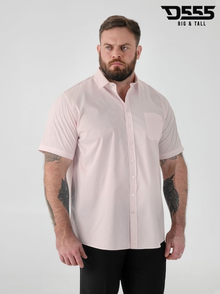 D555 Pink JAMES Classic Oxford Short Sleeve Button Down Shirt With Chest Pocket