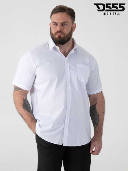 D555 White Aeron Short Sleeve Easy Iron Classic Regular Shirt With Chest Pocket