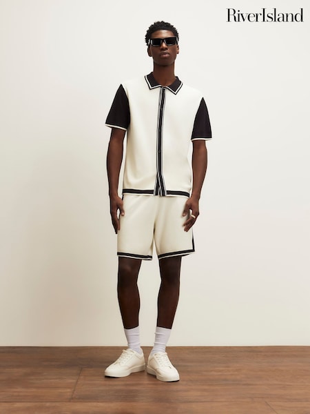 River Island Cream Slim Fit Glossy Knitted Colour Block Shorts