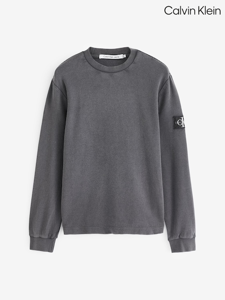 Calvin Klein Grey 100% Cotton Washed Badge Waffle T-Shirt