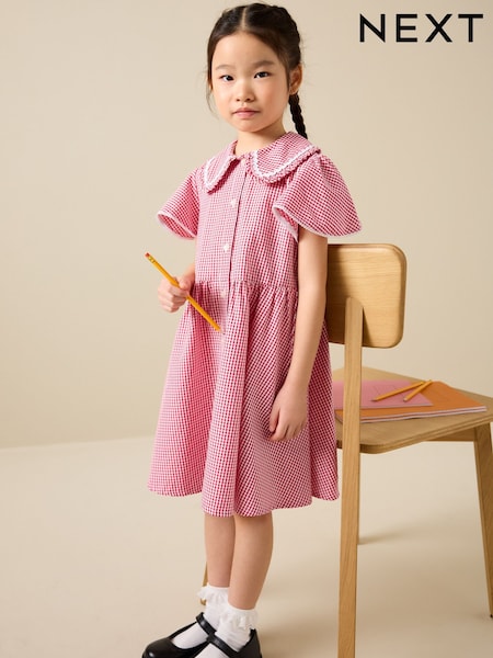 Red Gingham Cotton Rich Angel Sleeve School Dress (3-14yrs)