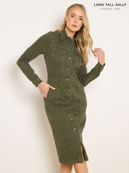 Long Tall Sally Green Denim Button Thru Midi Dress