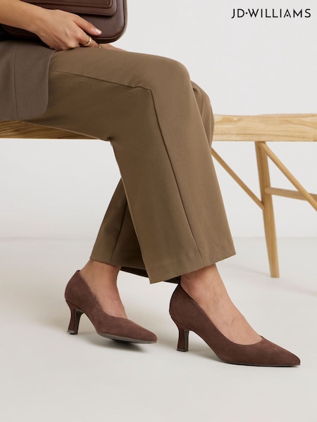 JD Williams Brown Wide Fit Pointed Toe Kitten Heel Shoes