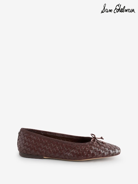Chocolate Brown Forever Comfort® Leather Weave Ballet Flats