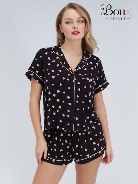 Boux Avenue Black Heart Stripe Modal Short Pyjamas Set