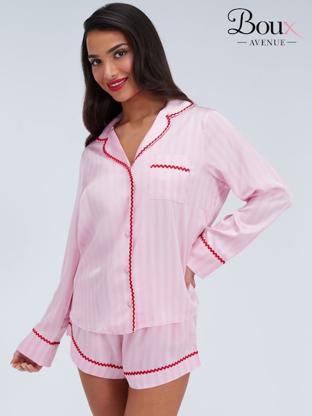 Boux Avenue Pink Stripe Satin Short Pyjamas Set
