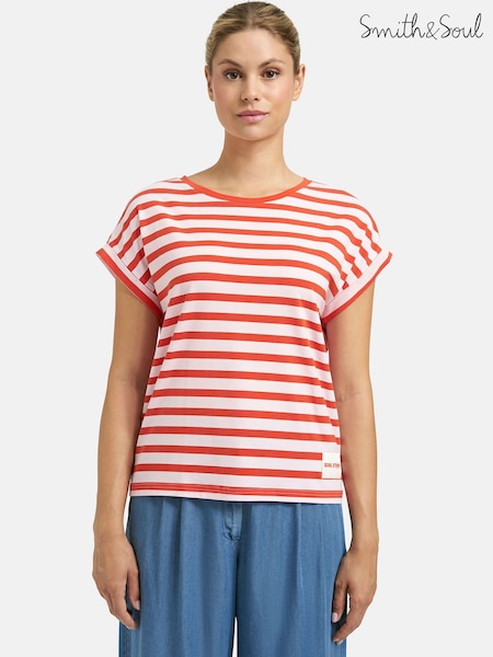 Smith & Soul Red Striped Oversized T-Shirt