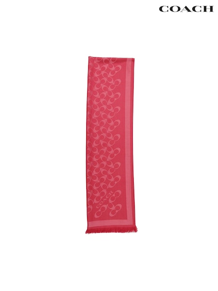 COACH Pink Bias Signature C Oblong Scarf