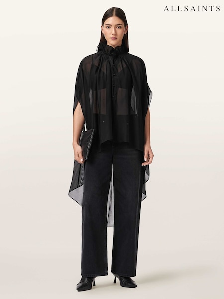 AllSaints Black Sez Tulle Cape