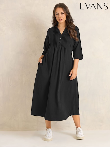 Evans Black Short Sleeve Jersey Collar Henley Dress