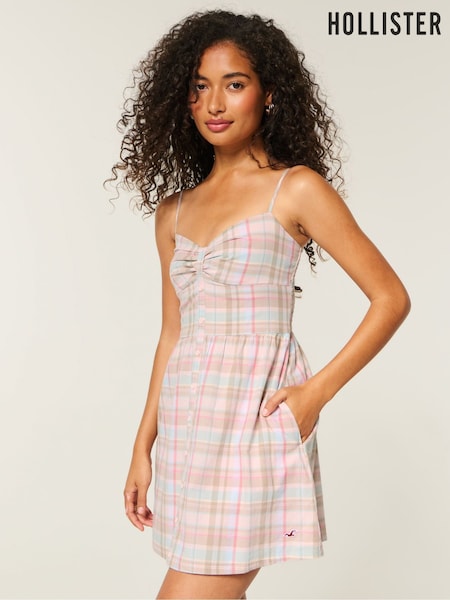 Hollister Pink Gingham Check Babydoll Mini Dress