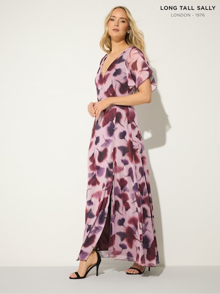 Long Tall Sally Pink Floral Mesh Wrap Maxi Dress