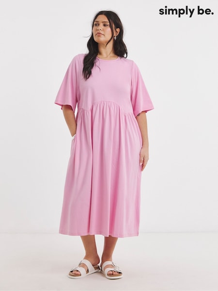 Simply Be Pink Boxy Sleeve Jersey Midi Dress